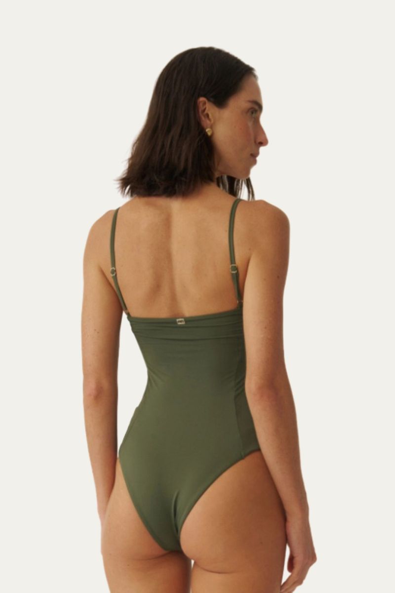 Modelagem estruturada. Drapeado frontal e lateral. Bojo com acabamento drapeado. Alças em rolotê trançado. Possui barbatanas laterais para sustentação. Peça indicada para maior conforto e segurança.