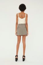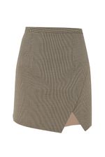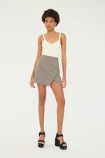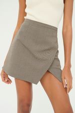 Saia curta assimétrica de alfaiataria com toque de viscose.
