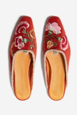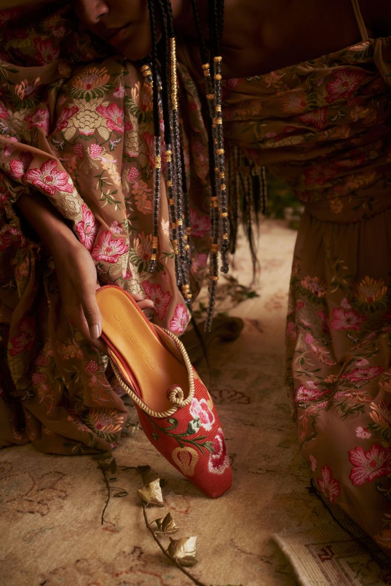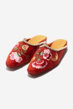 A mule Iris CRIS BARROS é um statement. Mule de bico quadrado, feita de veludo cotelê com bordados florais exclusivos e cordão de são francisco dourado nos acabamentos. Possui forro e solado de couro.