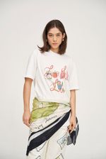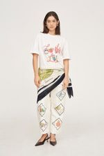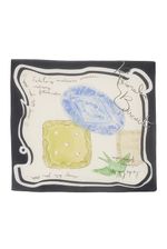 Panneaux estampado em tecido com toque de seda. Formato quadrado. Estampa exclusiva de biscoitos em cores suaves e detalhes manuscritos. Pode ser amarrado de diferentes maneiras.