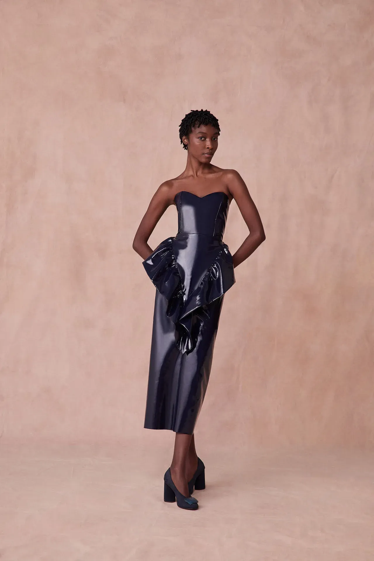 Vestido Midi Látex Light Paula Raia - MARINHO