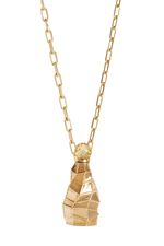 Pingente em prata 925 com banho de ouro amarelo.<br>Modelo maxi.<br>Formato de perfumeiro.<br>Alça para passante de corrente.<br>Possui cristal citrino no topo.<br>Peça com banho de ouro amarelo.<br>Detalhes em relevo de nervuras na peça.<br>Acabamento polido.<br><br>Material: Prata 925, Ouro Amarelo.<br><br>Medidas:<br>TU - Altura: 3,5cm