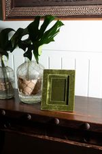O porta-retrato mede 19x24 cm e comporta fotos 10x15. Ele pode ser usado na vertical ou horizontal, apoiado em alguma superfície ou pendurado na parede.