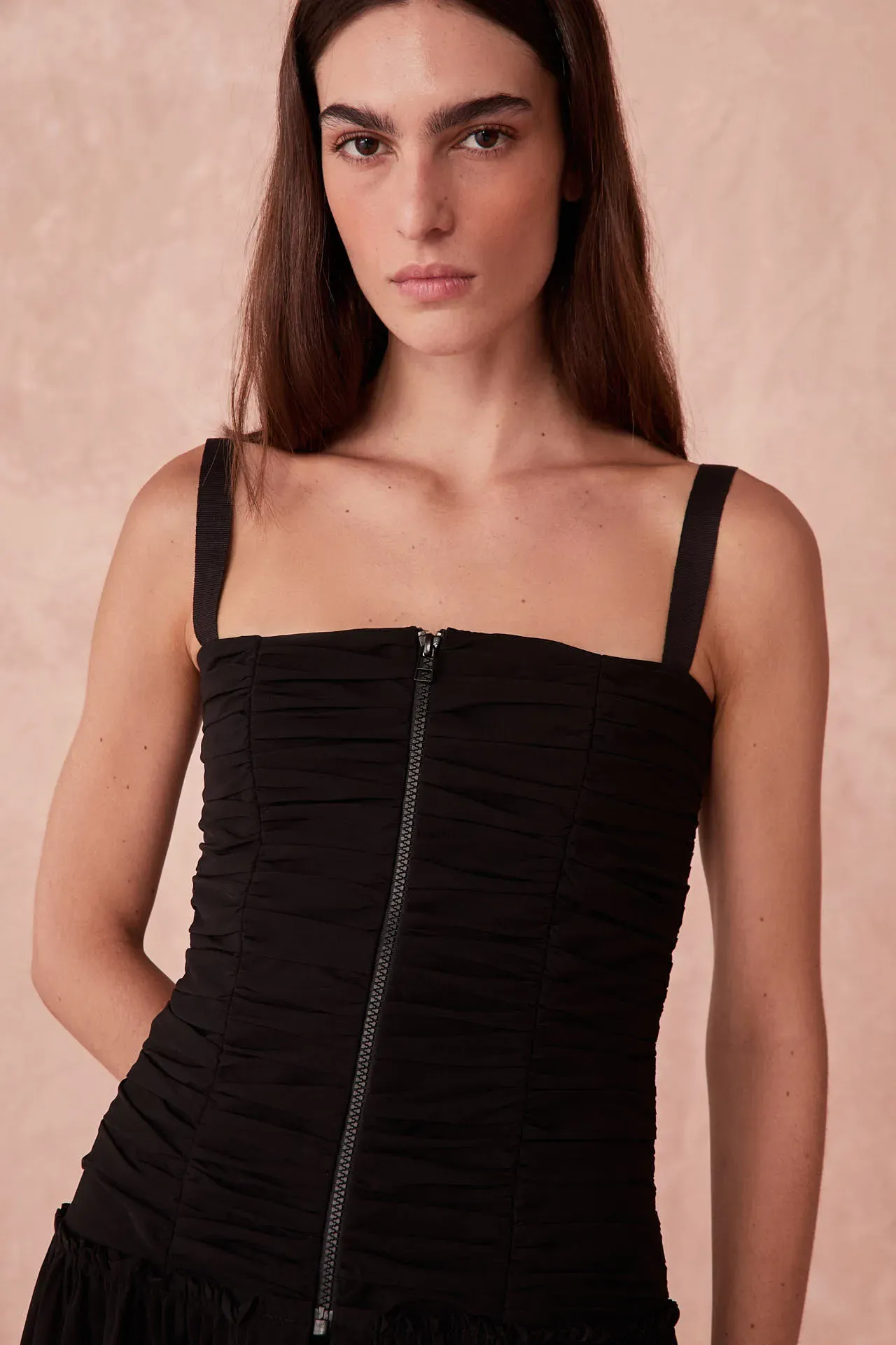 Vestido Midi Nylon Crema Paula Raia - PRETO