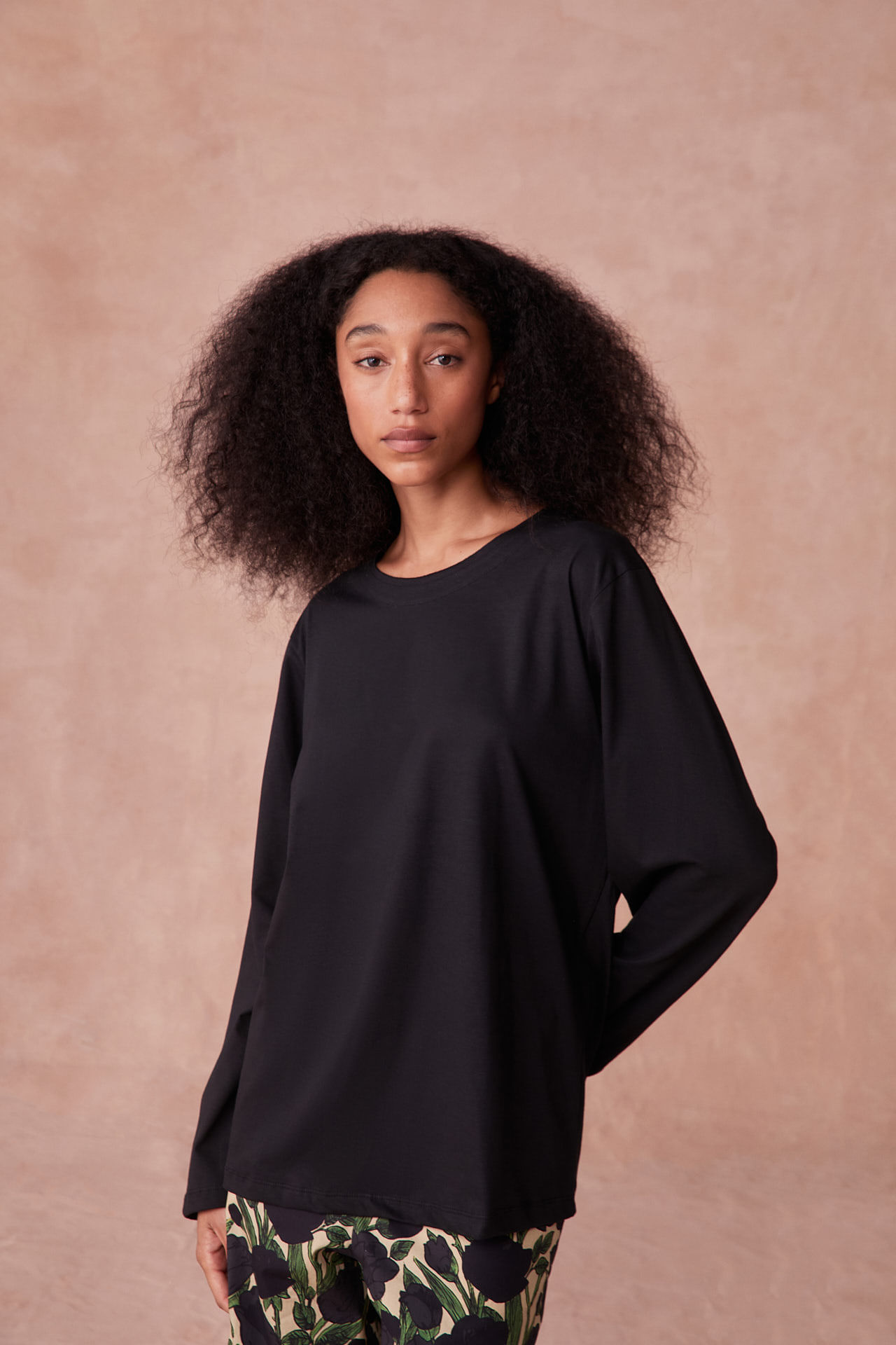 Blusa Manga Longa Malha Tinturada Paula Raia - PRETO