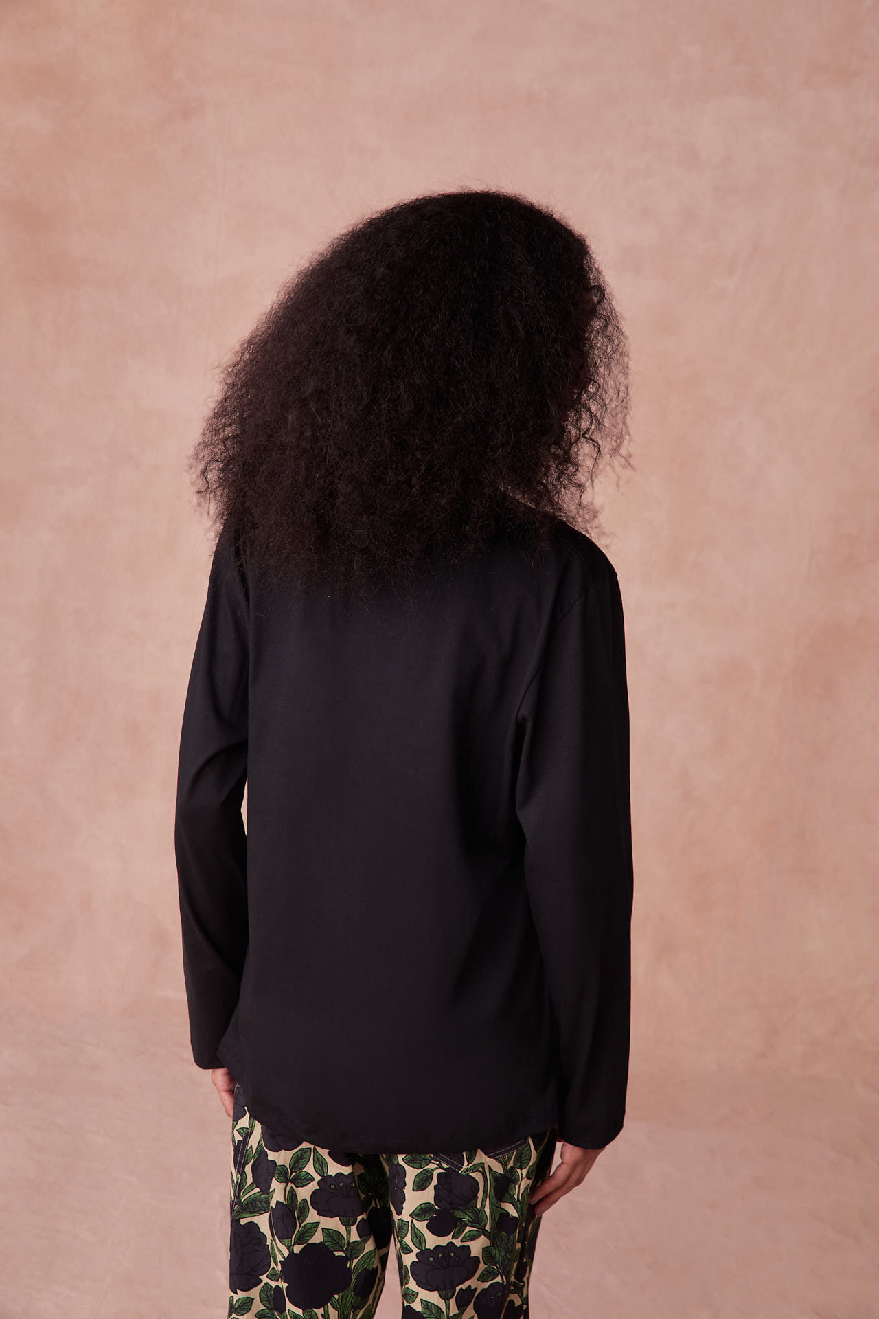 Blusa Manga Longa Lycra Jardim Paula Raia - PRETO
