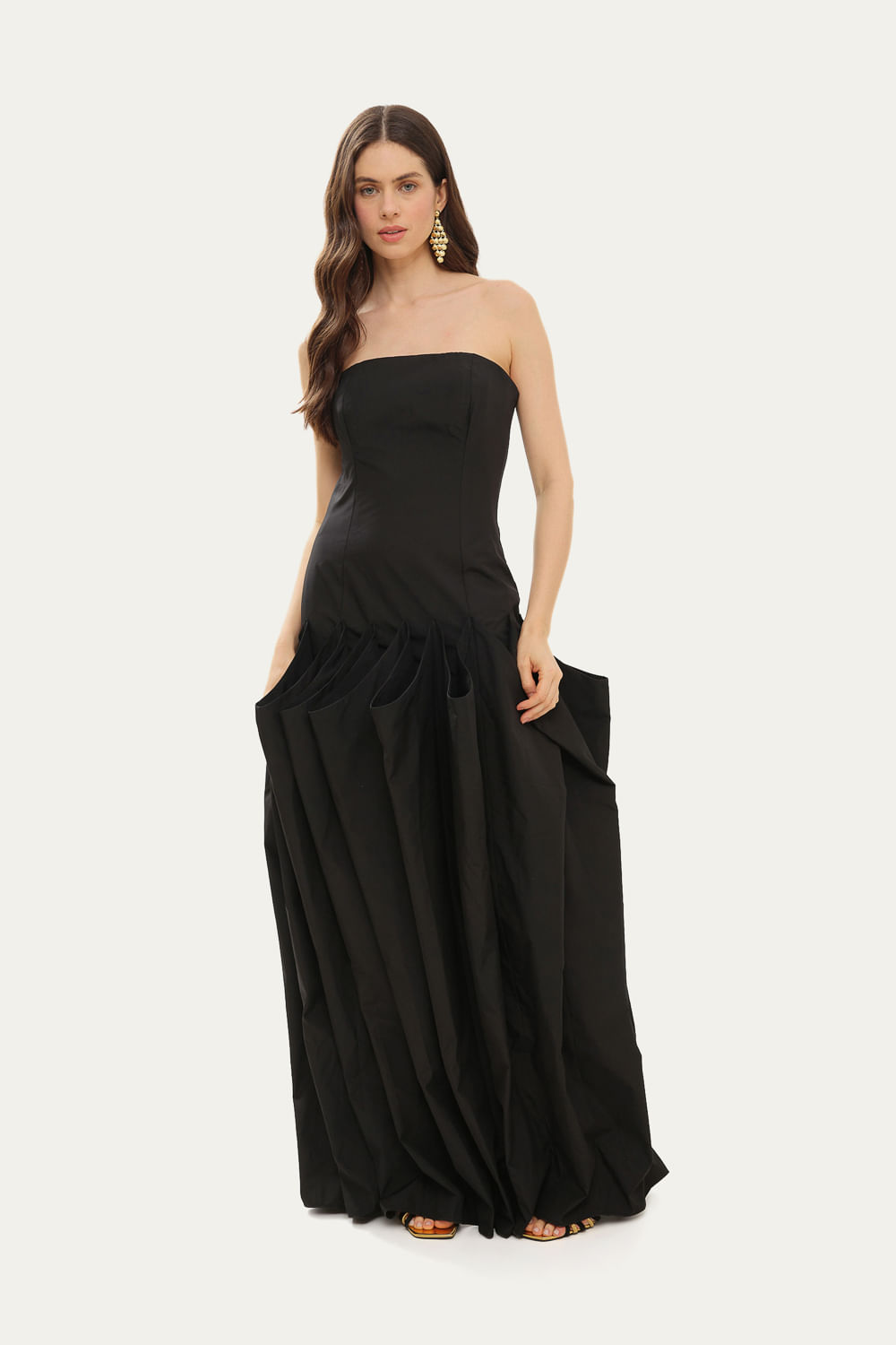 Vestido Longo Geométrico Chaouiche - PRETO