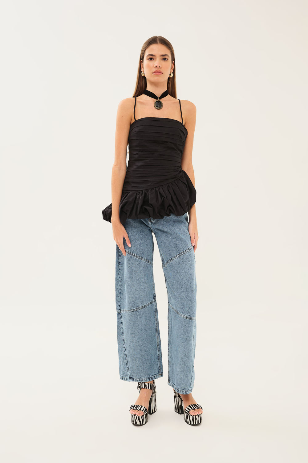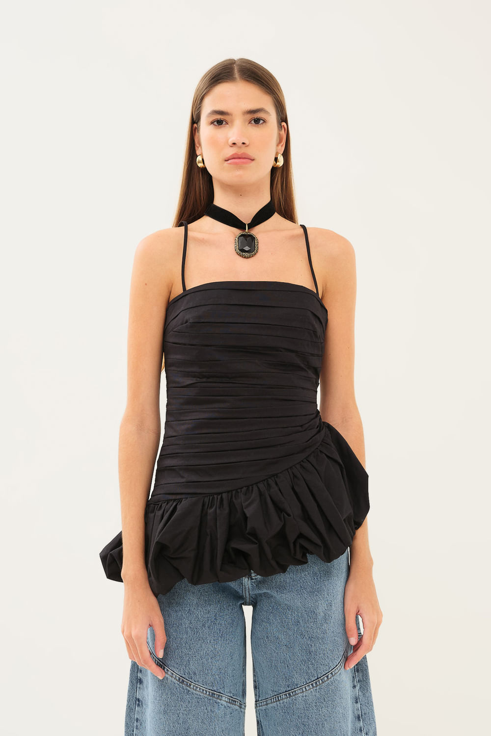 Top Cropped Satin Bdln - PRETO