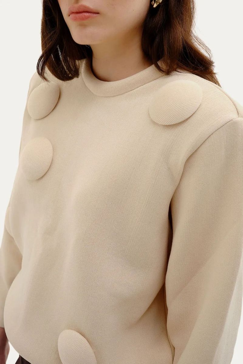 Desvende a Blusa Pull Tricot da Coven, uma peça que tece a delicadeza do tricot em uma silhueta reta e atemporal. Seu decote redondo clássico harmoniza com as mangas longas, conferindo um toque de sofisticação. Os detalhes esféricos acolchoados e as sutis ombreiras elevam o design, criando uma textura visual encantadora. Com um acabamento canelado nos punhos e barra, esta blusa é um convite à elegância e ao conforto.