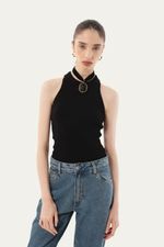 Esta peça apresenta um tricot canelado de toque suave e um decote redondo atemporal. Seu caimento impecável e as discretas franjas na barra conferem um movimento sutil, elevando a sofisticação de qualquer composição com elegância discreta.