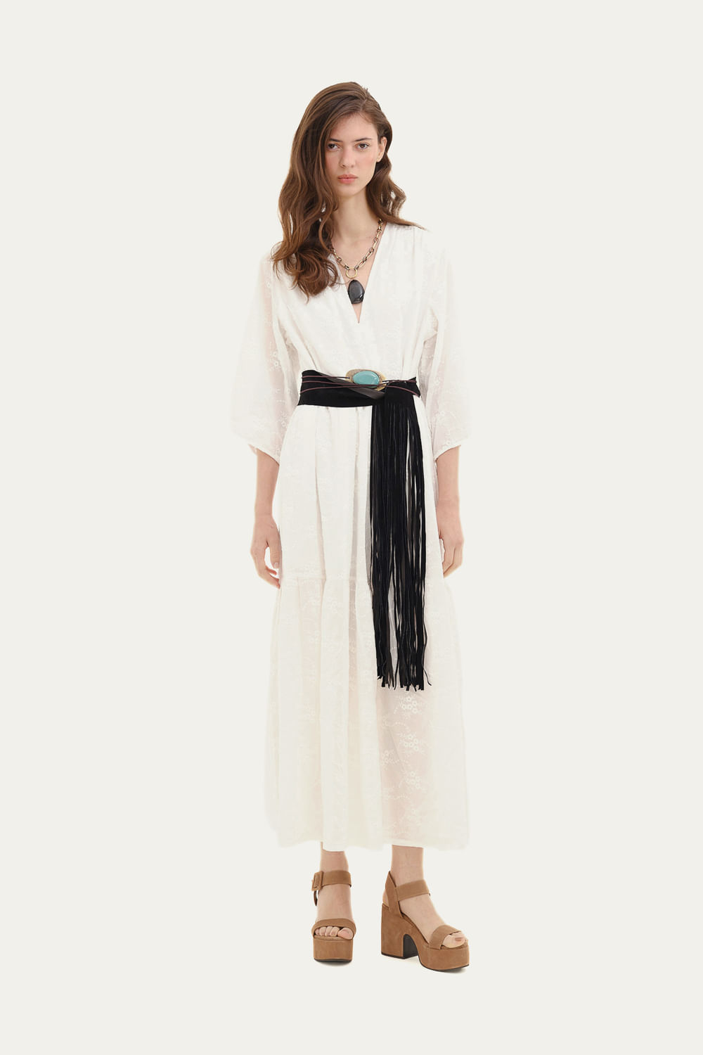 Vestido Longo Chackra Chaouiche - PRETO E BRANCO