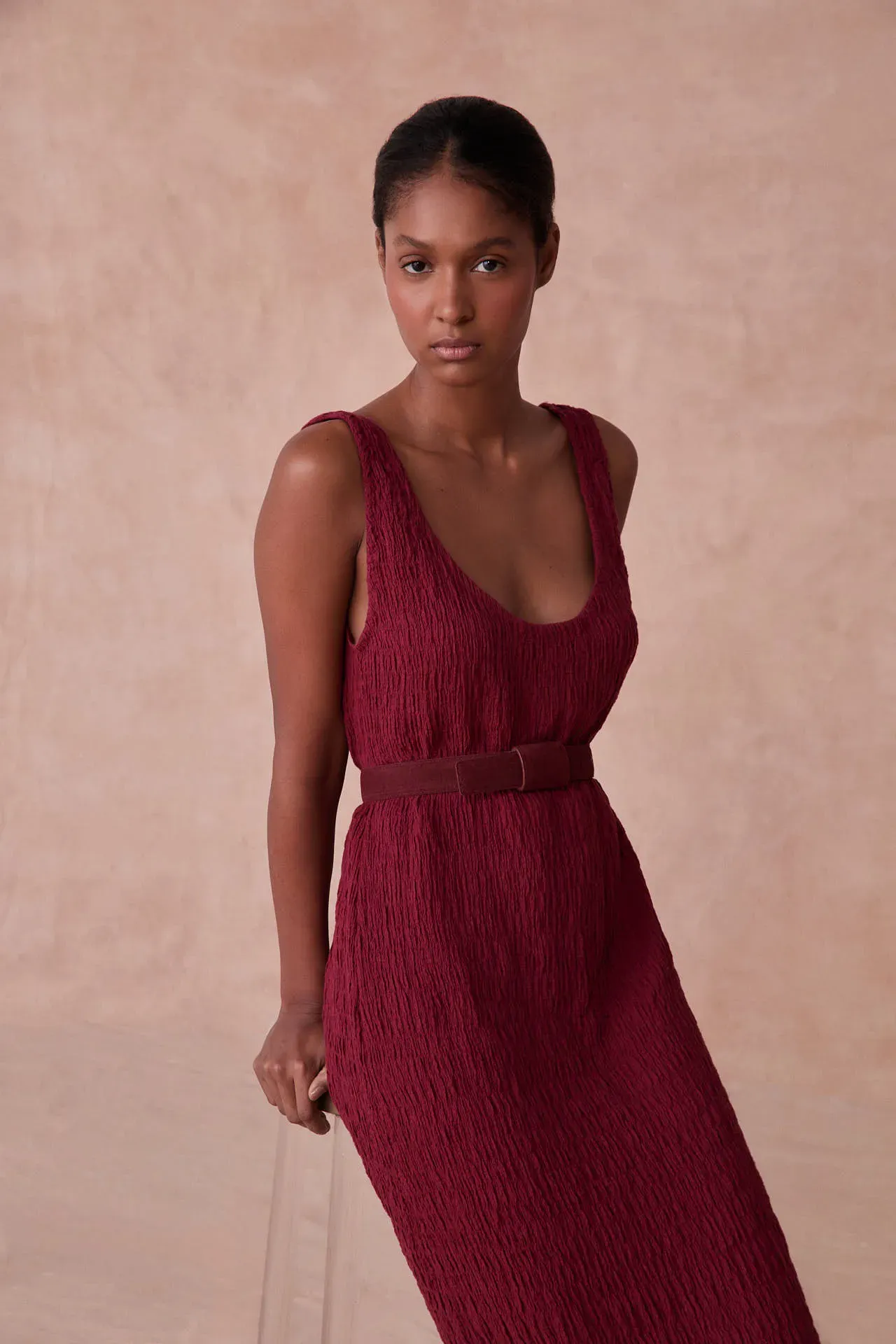 Vestido Midi Renda Rosé Paula Raia - VINHO