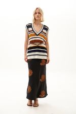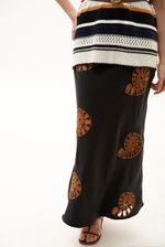 Saia midi com toque acetinado.