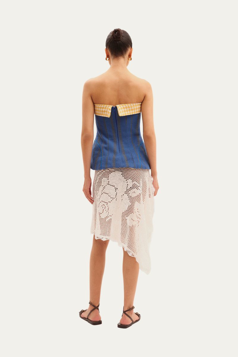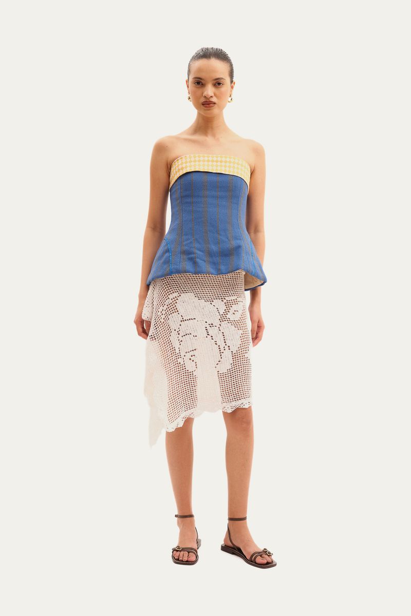 Saia de crochê feita à mão. Inspirada em caminho de mesa. Peça tamanho único regulada por botão.
