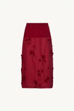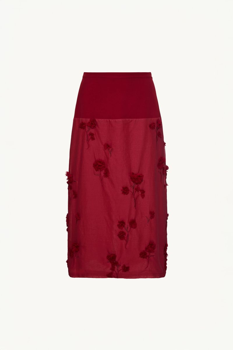 A saia Chiara CRIS BARROS é sofisticada e delicada. De Ávila, voil 100% algodão bordado com cravos delicadamente recortados e aplicados em cada caule, criando o efeito de um jardim 3D. Possui shape reto, cintura alta, fendas laterais, pala de Avalon, comprimento midi e fechamento por zíper lateral invisível.
