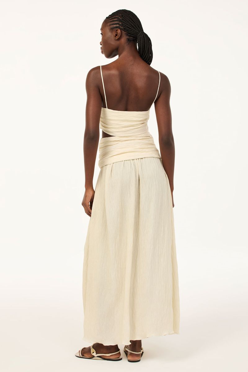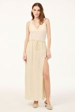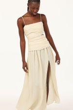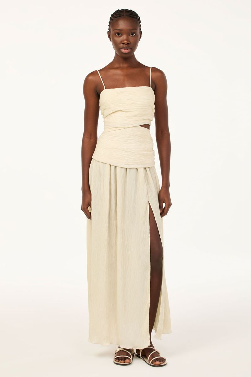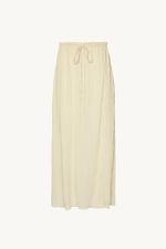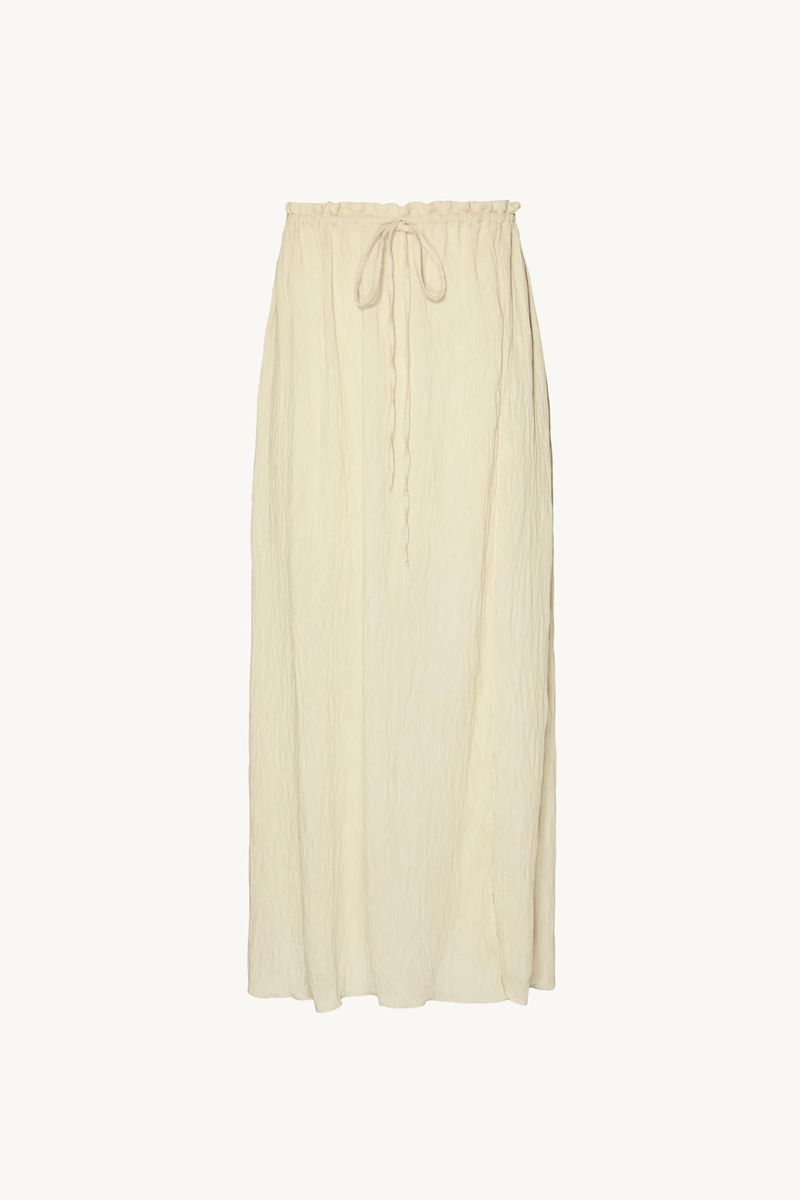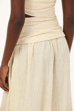 A saia Elise CRIS BARROS é cool e estiloso. De Tunisia, tecido misto com toque leve, brilho e caimento perfeito. Possui shape reto bem franzido na cintura, cintura alta, fenda frontal, comprimento midi e fechamento por rolotês ajustáveis com pérolas naturais.