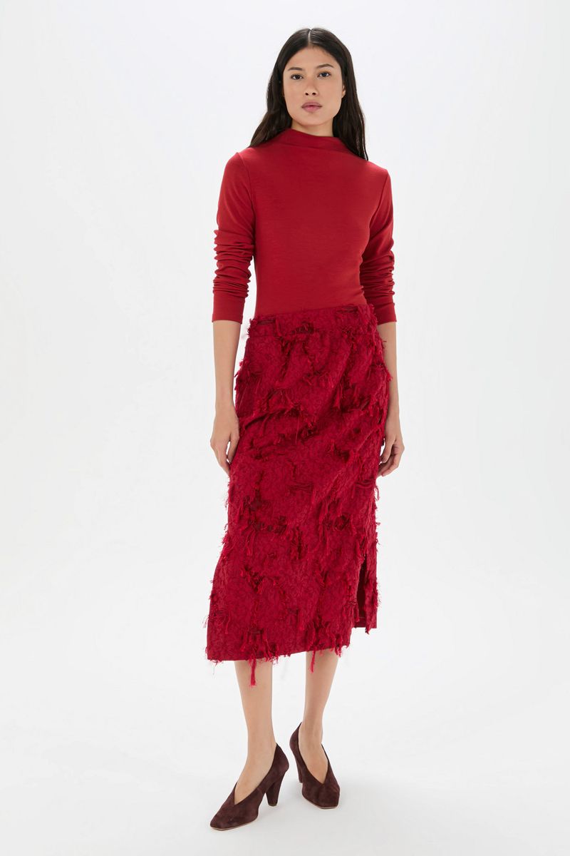 A saia Ficus CRIS BARROS é cool e marcante. De Málaga, nosso jacquard que traz desenho floral criado a partir de tramas com efeito desfiado trazendo um efeito franjado para todo o tecido. Possui shape reto, cintura alta, comprimento midi, fendas laterais e fechamento por zíper invisível lateral.