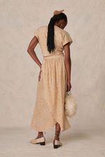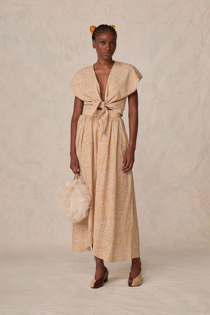 Confeccionada em algodão estampado, a saia midi da Paula Raia revela uma silhueta godê, acentuada pela cintura alta e um cós largo. A estampa abstrata que a define oferece um toque de originalidade e fluidez, elevando o conforto com um estilo singular.