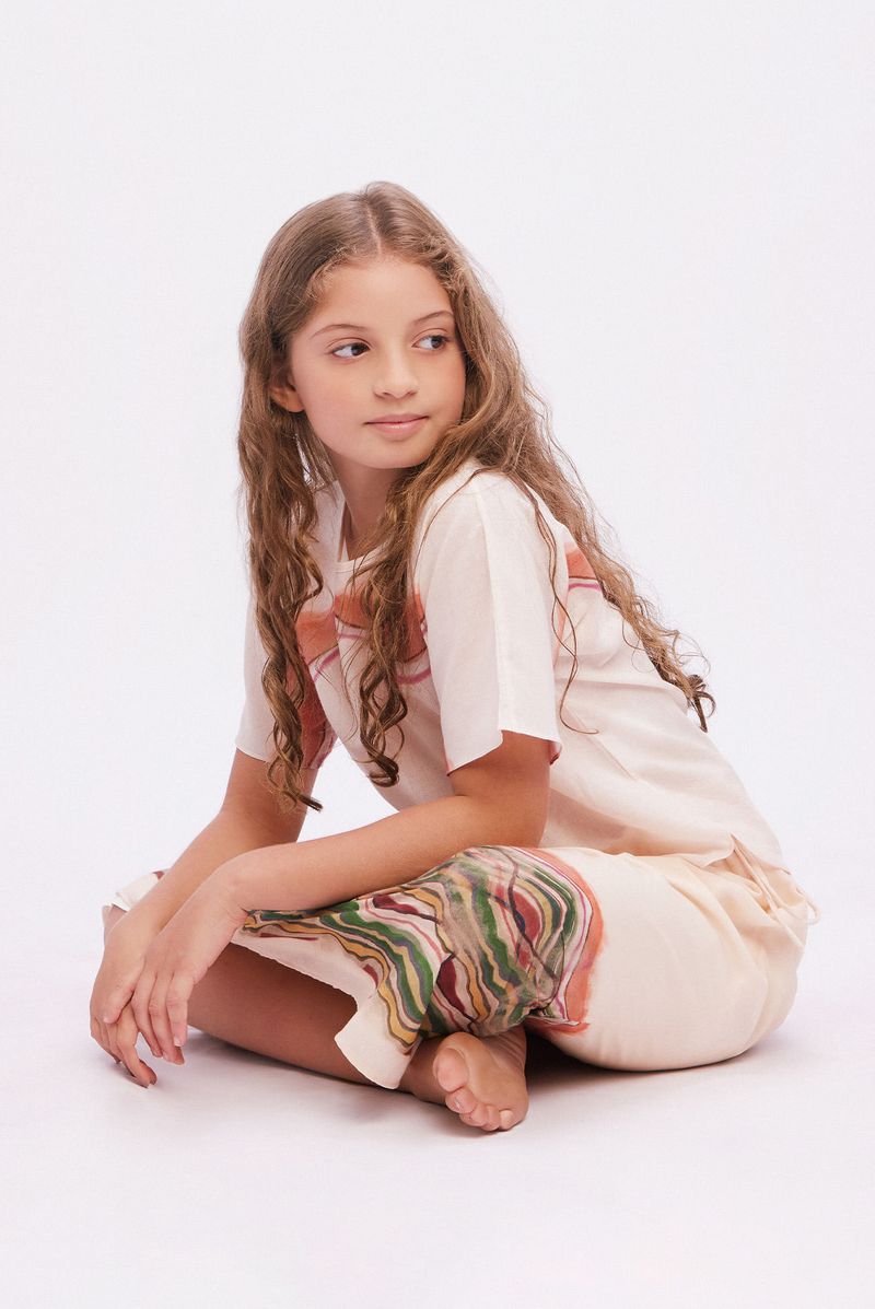 A saia Helen mini CRIS BARROS é artsy. De Lavinia, tecido 100% algodão, leve e versátil para deixar as pequenas livres, traz estampa exclusiva Minério, desenvolvida em nosso atelier, localizada na barra. Possui shape reto, rolotes nas laterais para amarração e leve franzido abaixo do cós. Dica de styling: Combine com o top Arya CRIS BARROS mini.