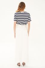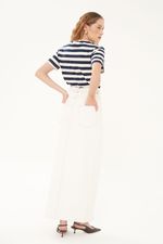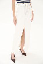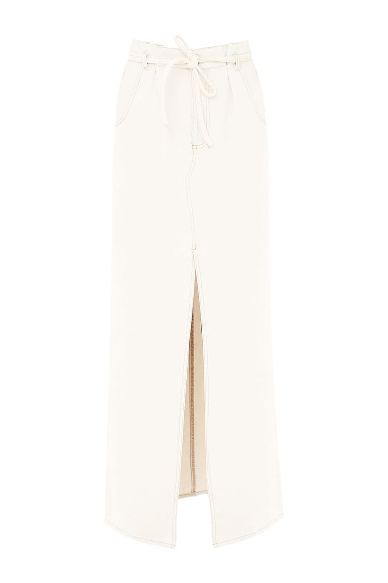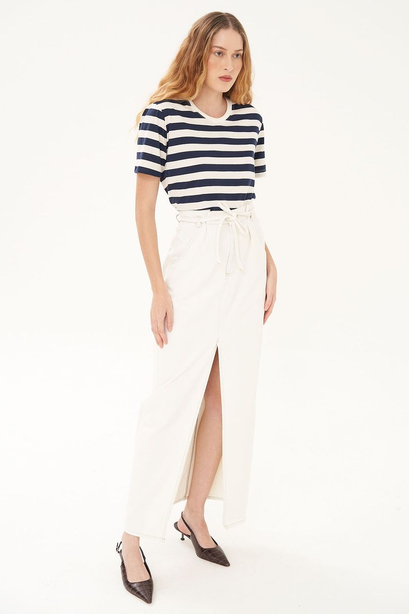 Saia jeans em algodão com toque encorpado.