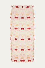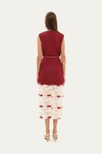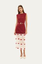 A Saia Maria Augusta, elaborada em organza com delicadas aplicações têxteis, apresenta uma fusão de sofisticação e bem-estar. Seu design midi de modelagem reta foi concebido para realçar a silhueta com uma estética contemporânea e refinada. A inclusão de um caleçon avulso assegura uma cobertura sutil e conforto, adaptando-se com graciosidade a diversas situações.