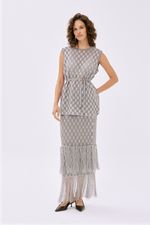 Saia Midi Franjas Jacquard Gig - PRATA
