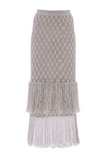 Saia midi em lurex com franjas.