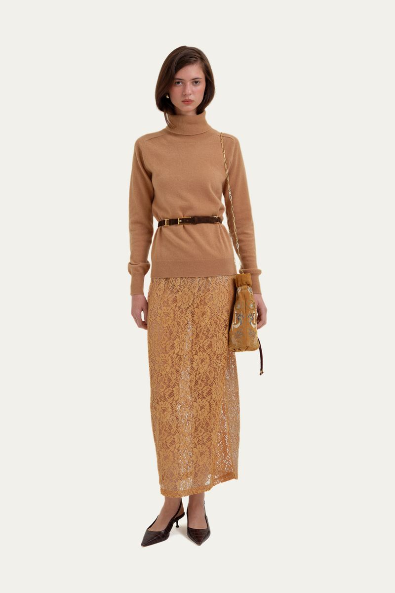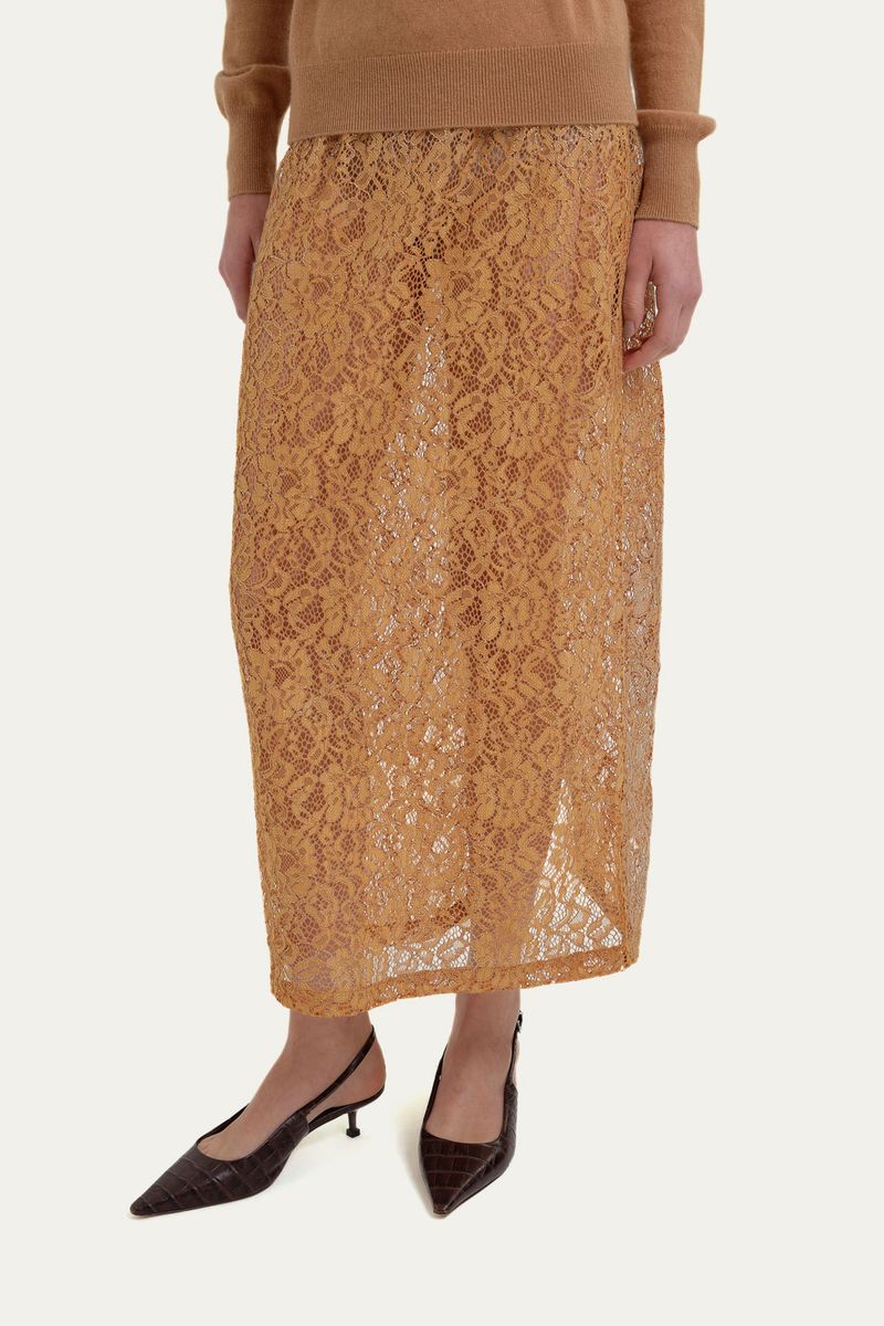 Saia midi em renda foil