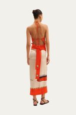 Esta saia midi transpassada da coleção Leme Lo De Lui revela um design pareô que se destaca por sua estampa exclusiva e vibrante, porém com uma sofisticação discreta. Sua natureza versátil permite uma variedade de amarrações, moldando-se a diferentes silhuetas e ocasiões, oferecendo uma expressão de elegância e praticidade com um toque de originalidade sutil.