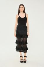 Saia Midi Tricot Babado Coven - PRETO