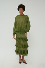Saia Midi Tricot Babado Coven - VERDE