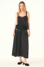 A saia Nalina CRIS BARROS é cool e moderna. De Bartô, algodão 100%, possui fibras naturais e biodegradáveis, tratado com produtos certificados OEKO-TEX , inofensivos para as pessoas e o meio ambiente. Possui shape reto, pala com entremeios de renda, cintura logo abaixo do umbigo com rolotê para amarração com pérola, comprimento midi e fechamento por zíper lateral invisível. Acompanha hot pants.