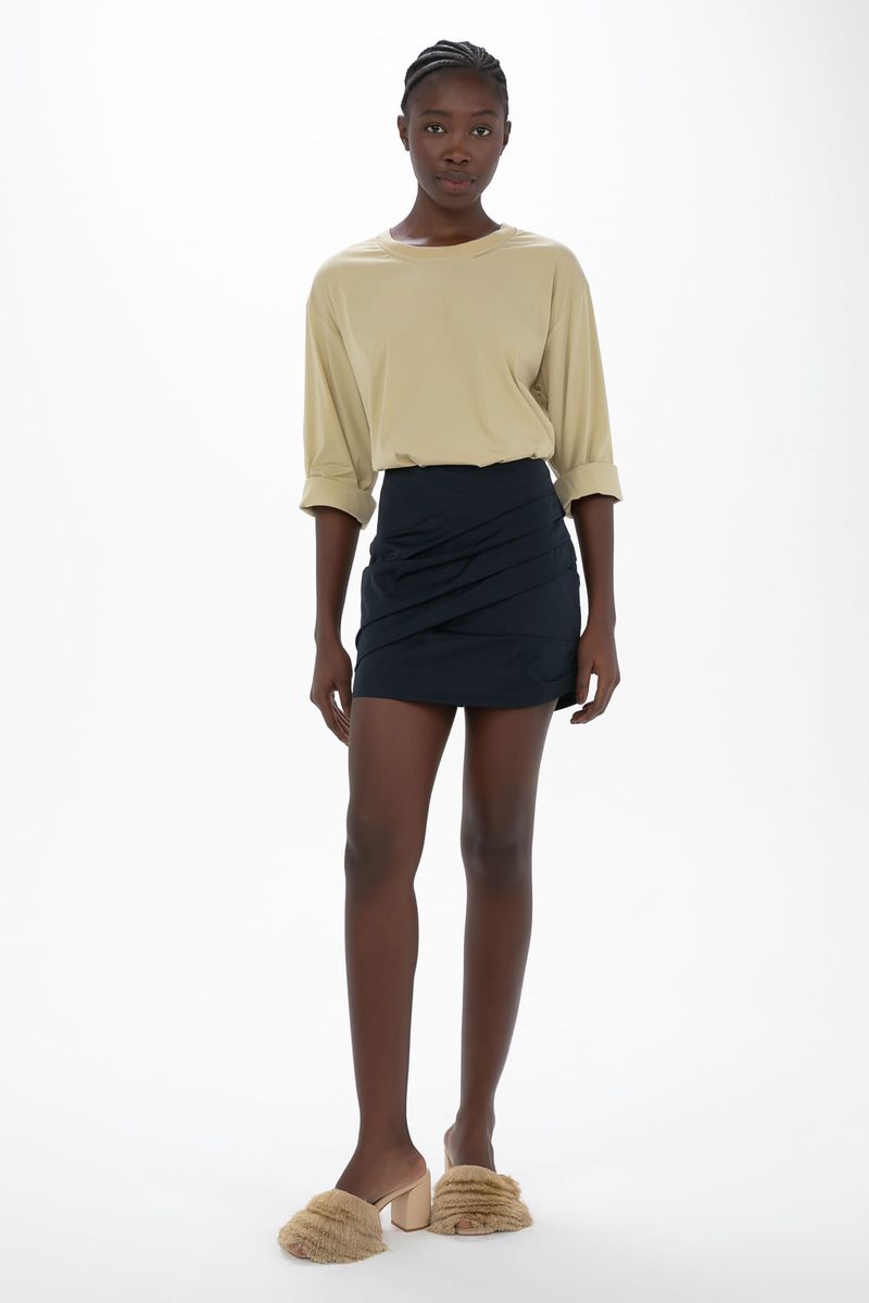 A saia Sadie CRIS BARROS é chique e escultural. De Lina, tecido misto de algodão, leve e sarjado com caimento preciso e único. Possui shape justo, cintura alta, recortes e drapeados, comprimento mini e fechamento por zíper invisivel lateral.