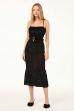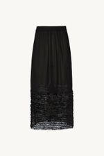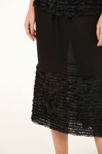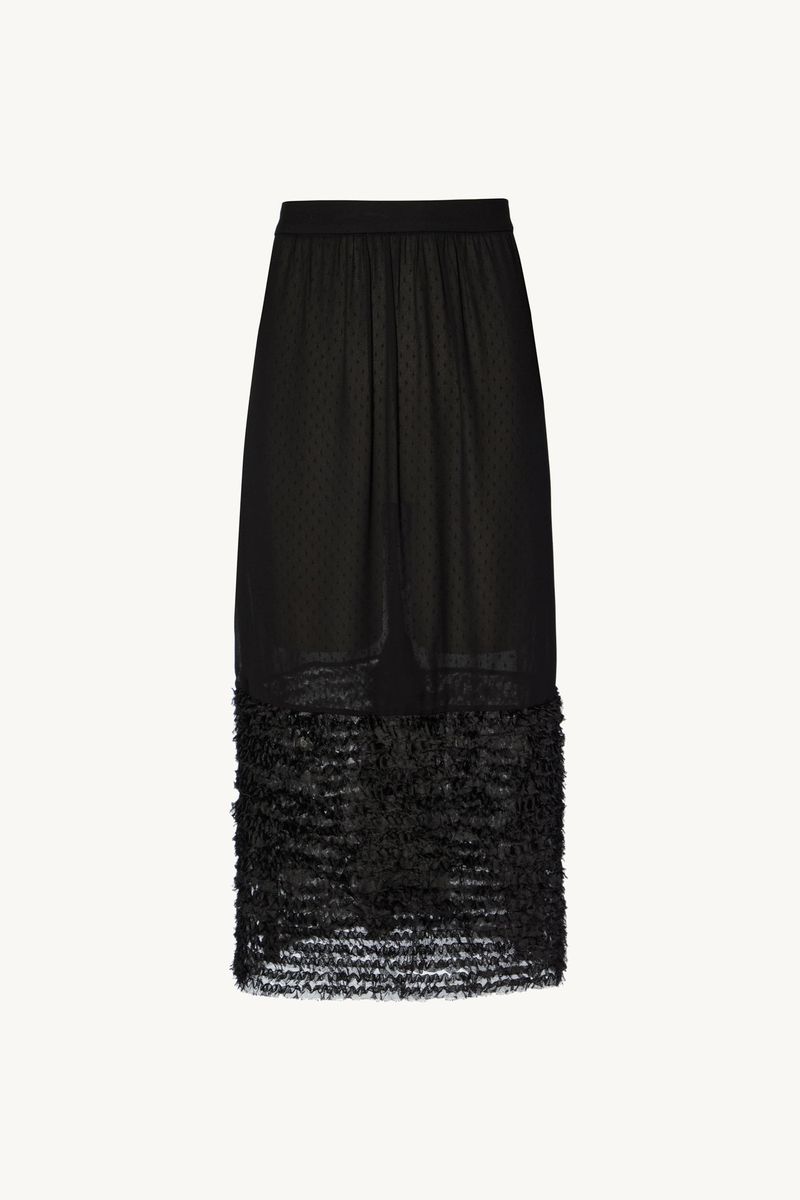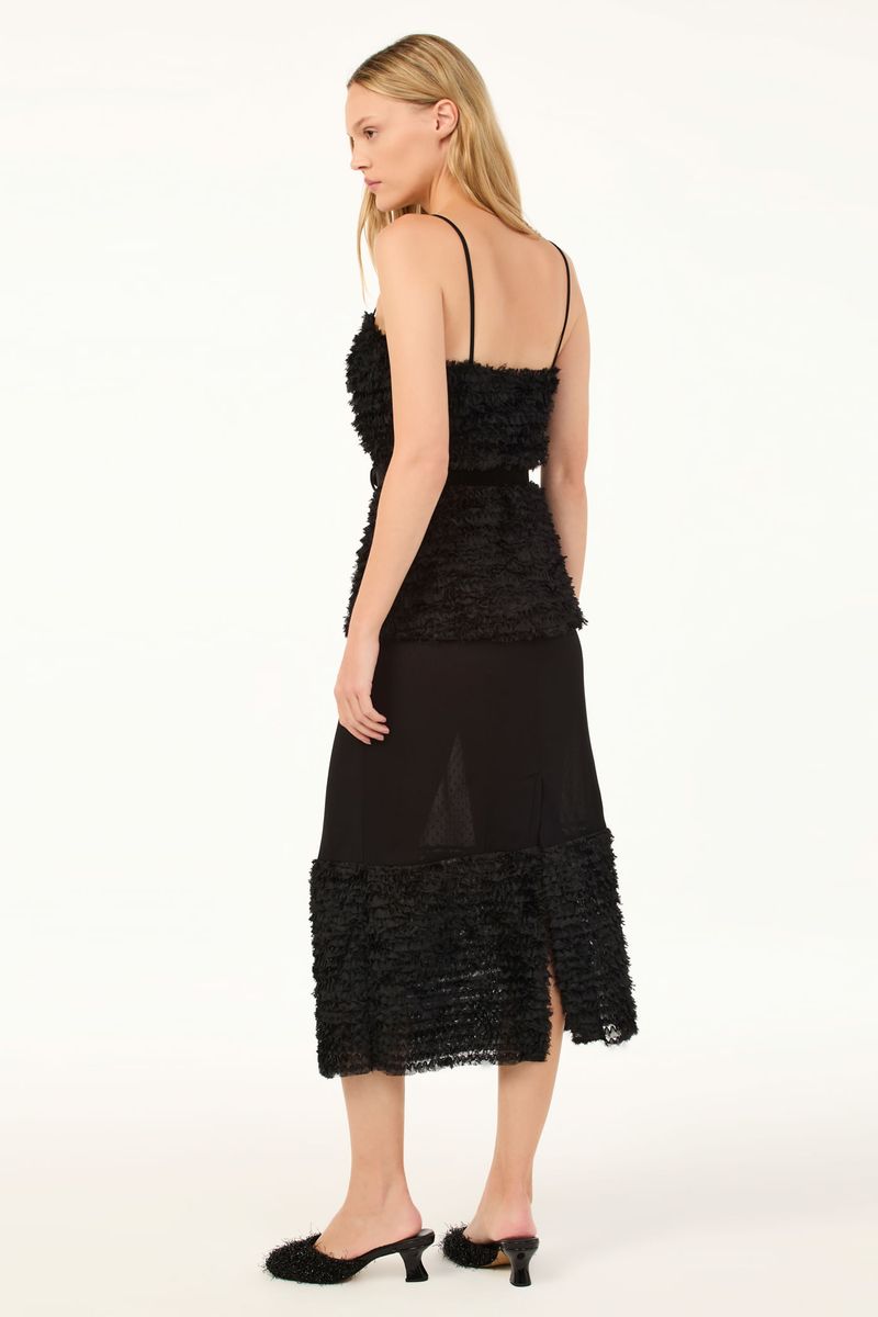 A saia Sublime CRIS BARROS é moderna e elegante. De Sublime, tecido transparente cobertos por fitas de tule bordadas em formato sinuoso, criando uma textura com efeito levemente desfiado. Possui shape reto, cintura alta, comprimento de Virgo e o barrado de Sublime, comprimento midi e fechamento por zíper lateral invisível.