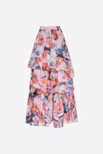 A saia Sulis CRIS BARROS nasce como um ícone de estilo e elegância. A peça é constituída por formas esculturais com babados a frente do corpo que se moldam ao corpo. A peça é de Amani, tecido de tafetá levemente encorpado, com elegante brilho e estampa exclusiva desenvolvida em nosso atelier. Sua modelagem é longa e ampla, possui costas franzidas e fechamento lateral com zíper invisivel. ma verdadeira obra de arte e que pode ser utilizado como peça chave em looks arrojados.