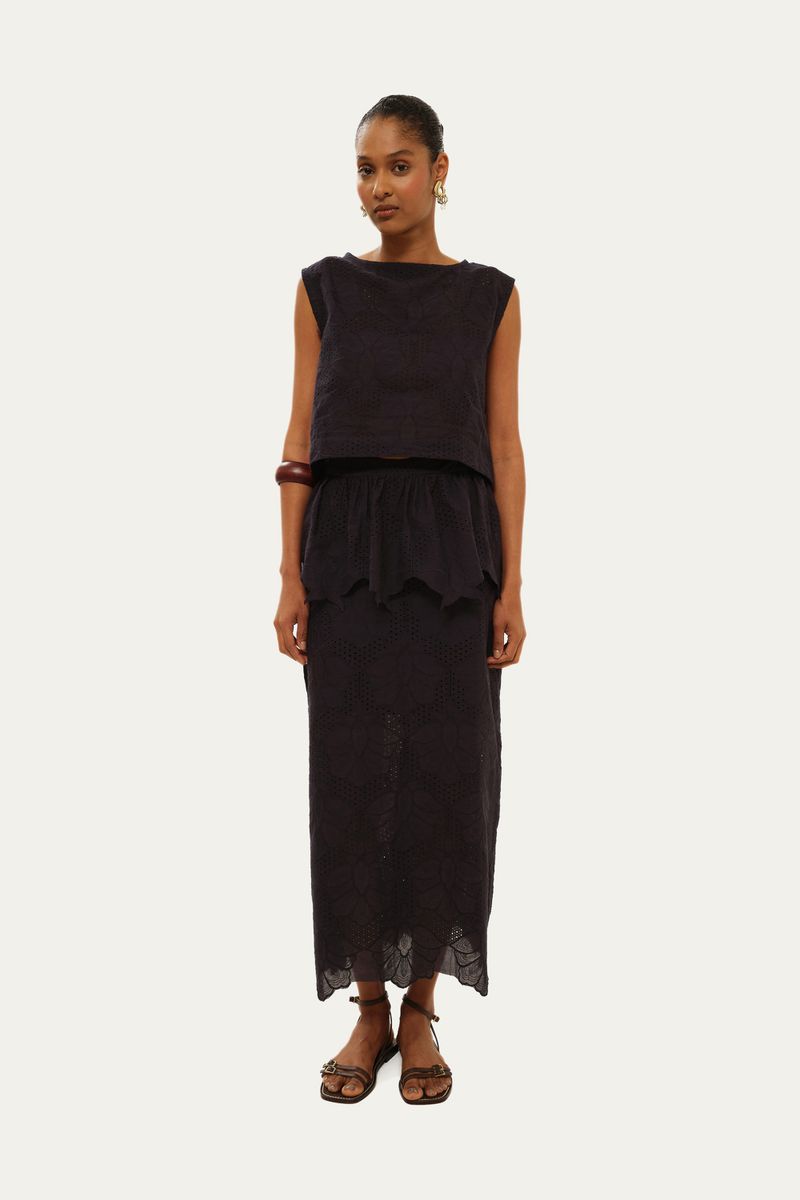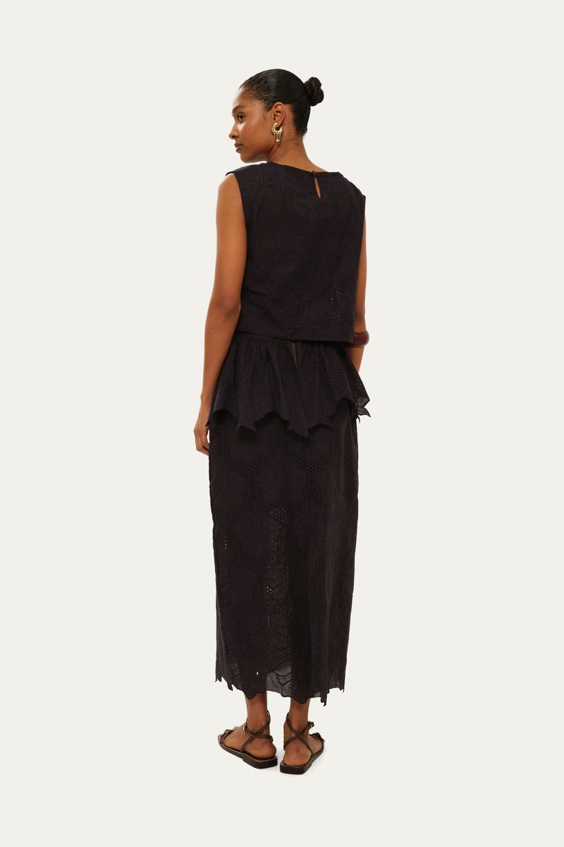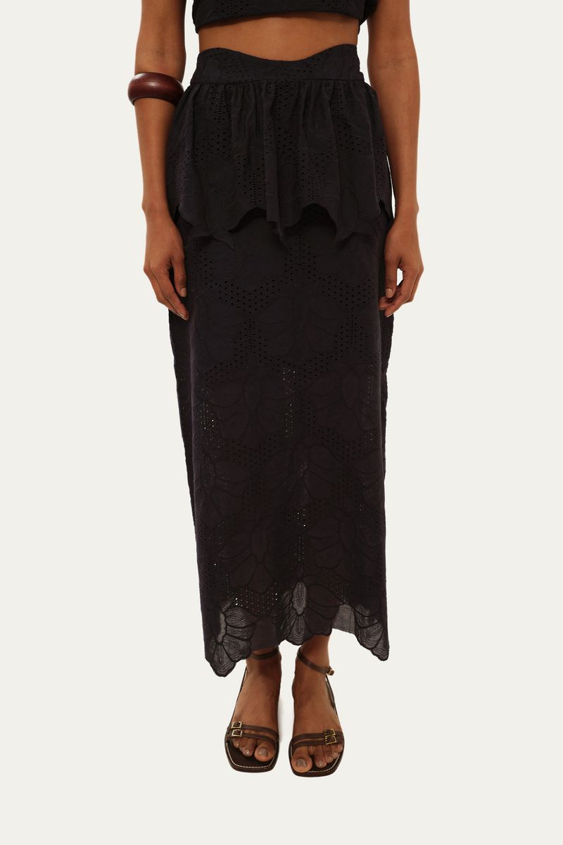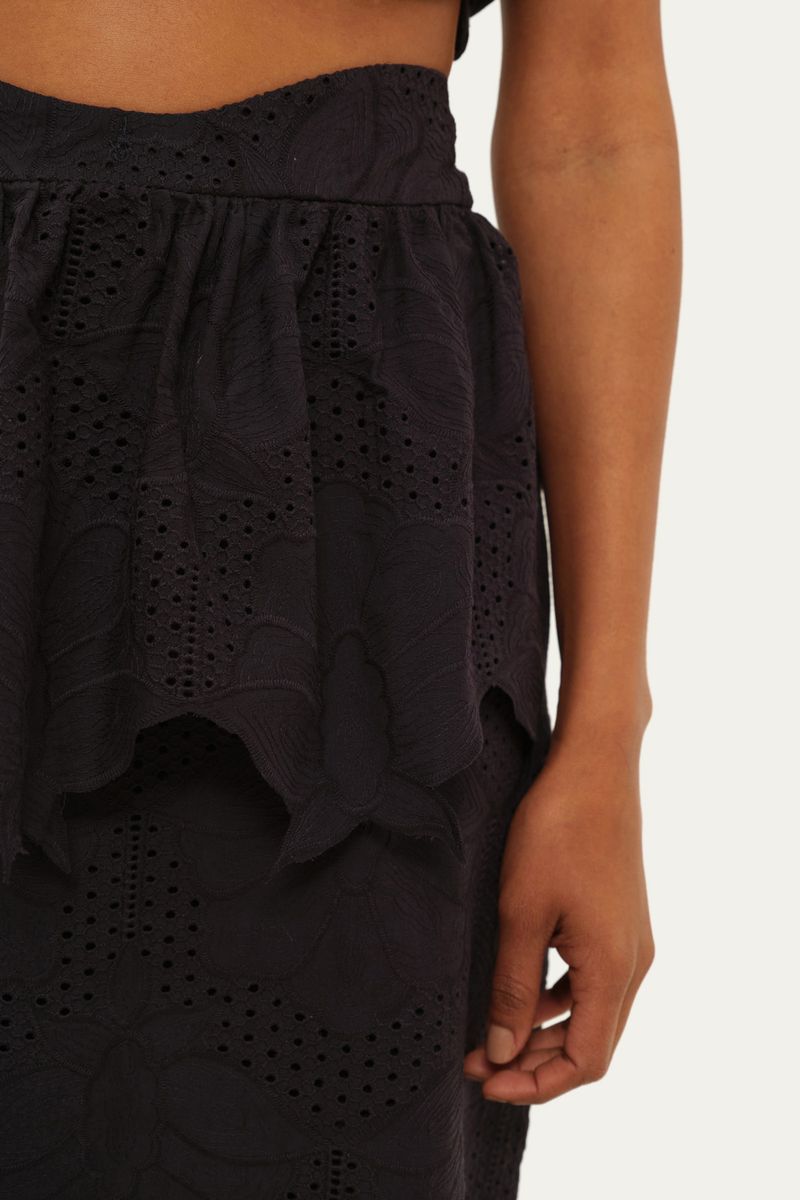 *Produto comercializado e enviado por Gaitee.Acompanha pala de babado fixa. Zíper de metal ouro velho na parte traseira. Detalhe de linho no cós. Acompanha forro fixo de algodão.