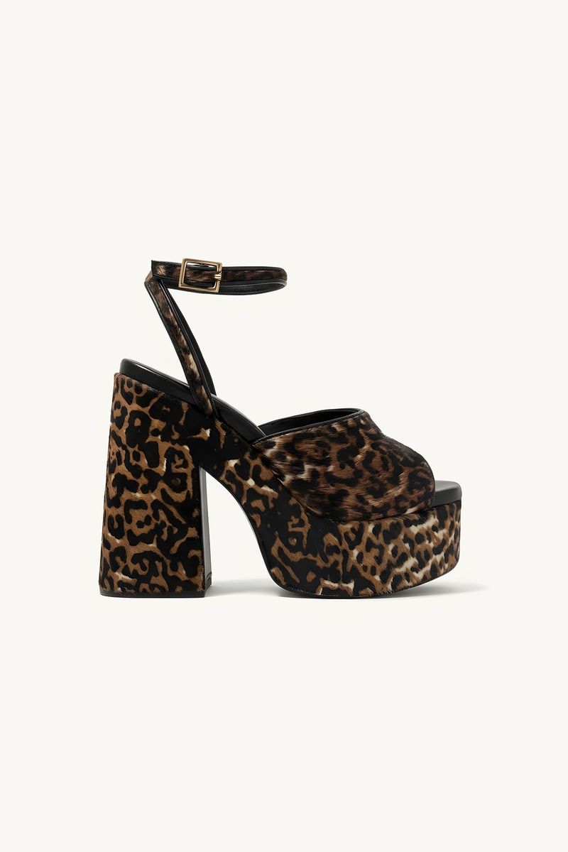 A Sandalia Notte traduz presença marcante, onde textura e volume se encontram em uma leitura moderna. O salto meia pata com pelos estampados e vivo de couro constrói um shape escultural, enquanto o forro e a palmilha de couro com espuma entregam sensação comfy; o fechamento por fivela dourada no calcanhar e o salto de design exclusivo da CRIS BARROS esculpido em mandeira arrematam a peça, com sola de borracha.