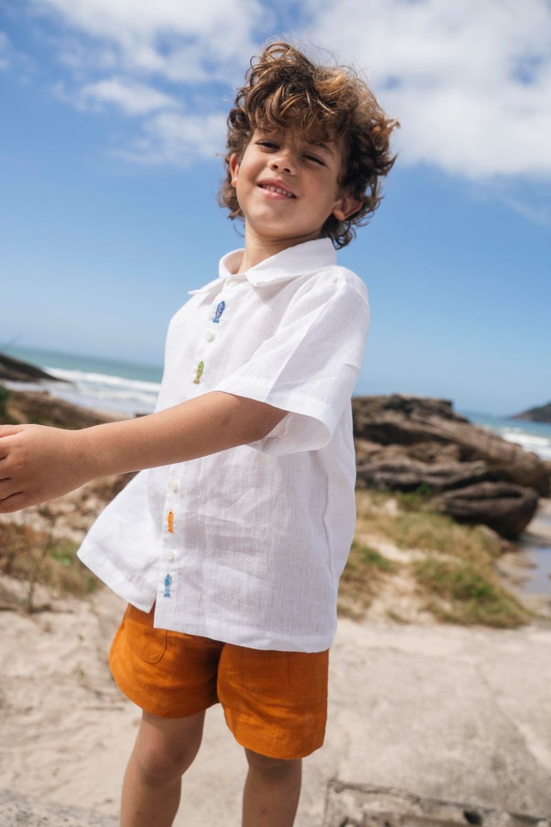 Um essencial do guarda-roupa infantil, o shorts Chico em linho verde alfazema é leve, versátil e confortável para acompanhar meninos e meninas nas descobertas do dia a dia.