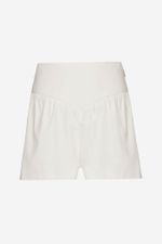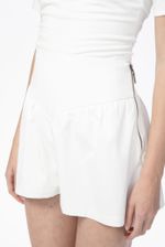 O shorts Shantal CRIS BARROS é fresh e sofisticado. De Cibele, tecido sarjado 100% algodão, perfeito para alfaiataria. Possui cintura alta com pala triangular no centro, modelagem acinturada e solta nas pernas, fechamento lateral por zíper de metal com puxador no mesmo tom da peça.