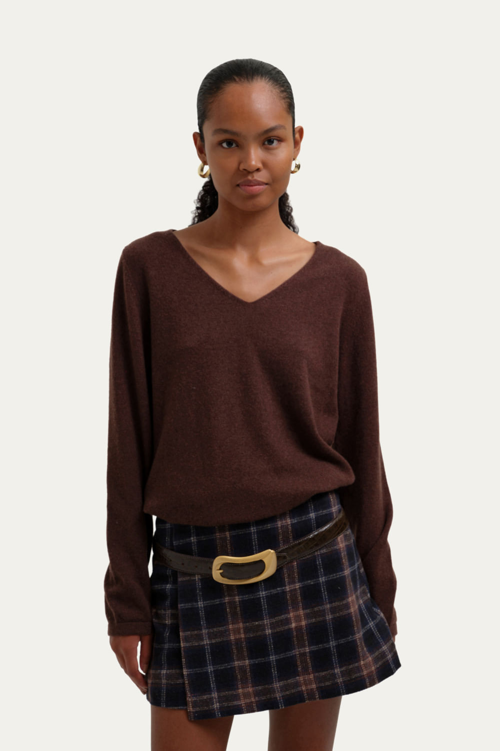 Blusa Bicolor Cashmere Luzzi Framed - Marrom