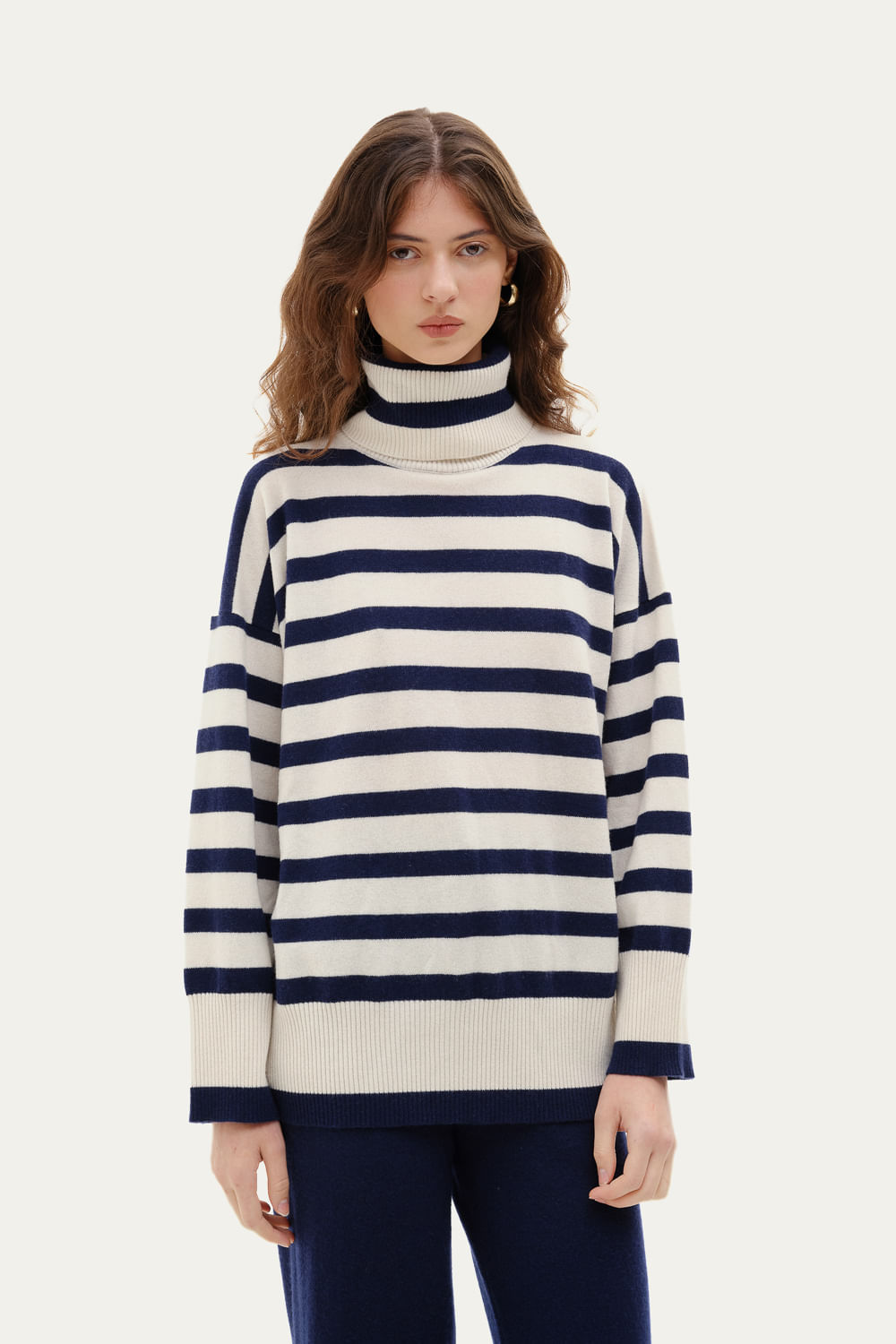 Blusa Bicolor Cashmere Luzzi Framed - Marinho