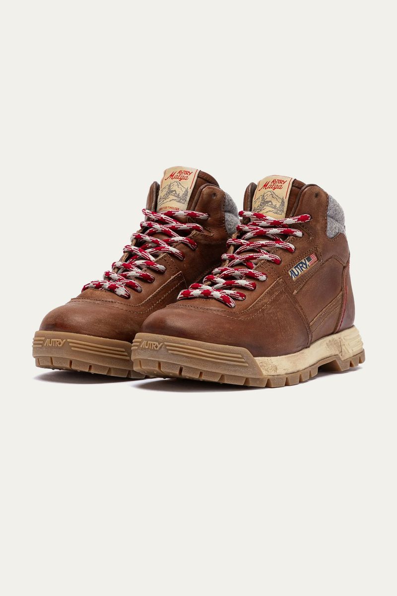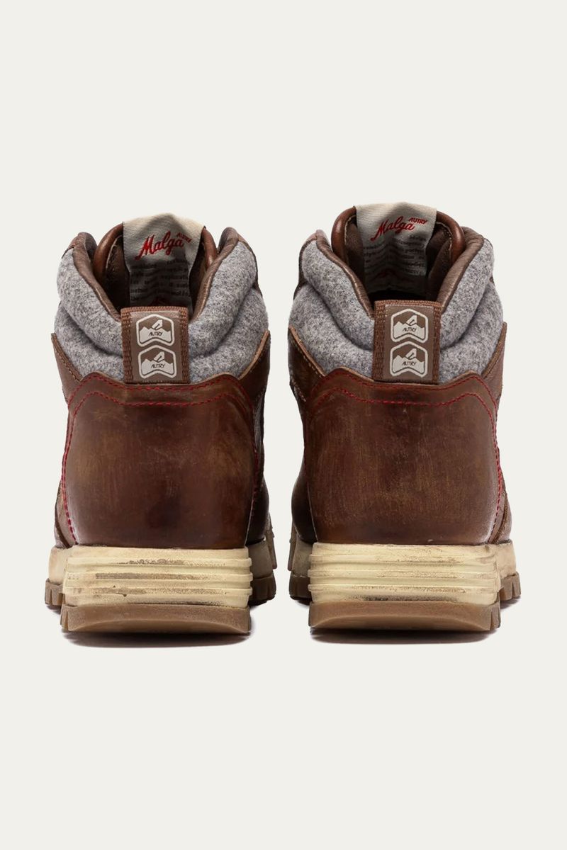 A Malga Mid Lea Red Autry, surge como uma bota de inverno que harmoniza a robustez da herança alpina com a elegância do estilo retrô. Confeccionada em camurça marrom, esta peça é um convite à aventura. Seu design de cano alto, aprimorado pela membrana Alpha Skin impermeável e respirável, é uma celebração das experiências ao ar livre e do requinte do estilo après-ski. Cada detalhe autêntico e a construção robusta asseguram não apenas conforto ideal, mas também a durabilidade essencial para suas jornadas.