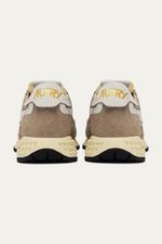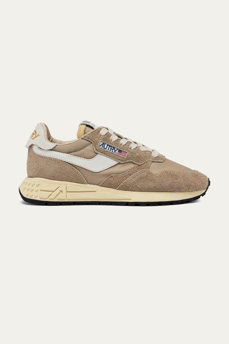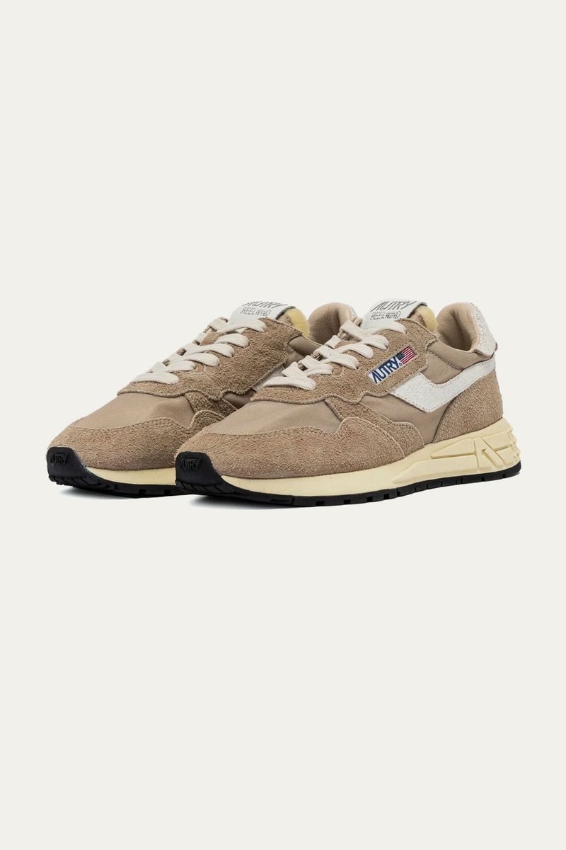 O Tênis Feminino Reelwind Low Nylon e Couro Craquelado Autry, harmoniza a essência do desempenho com uma estética urbana refinada. Seu design, que evoca dinamismo e elegância, é meticulosamente construído com painéis de nylon e camurça em delicados tons sobre tom.