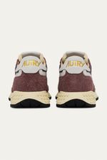 Tênis em tecido, couro e camurça.