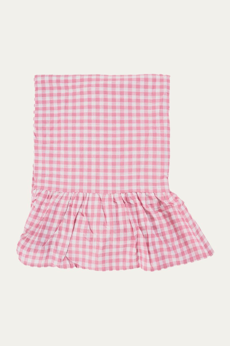 Toalha de mesa em algodão 100%, estampa xadrez e detalhe da barra em babado (os babados possuem 25cm). Mesa para 8 pessoas.