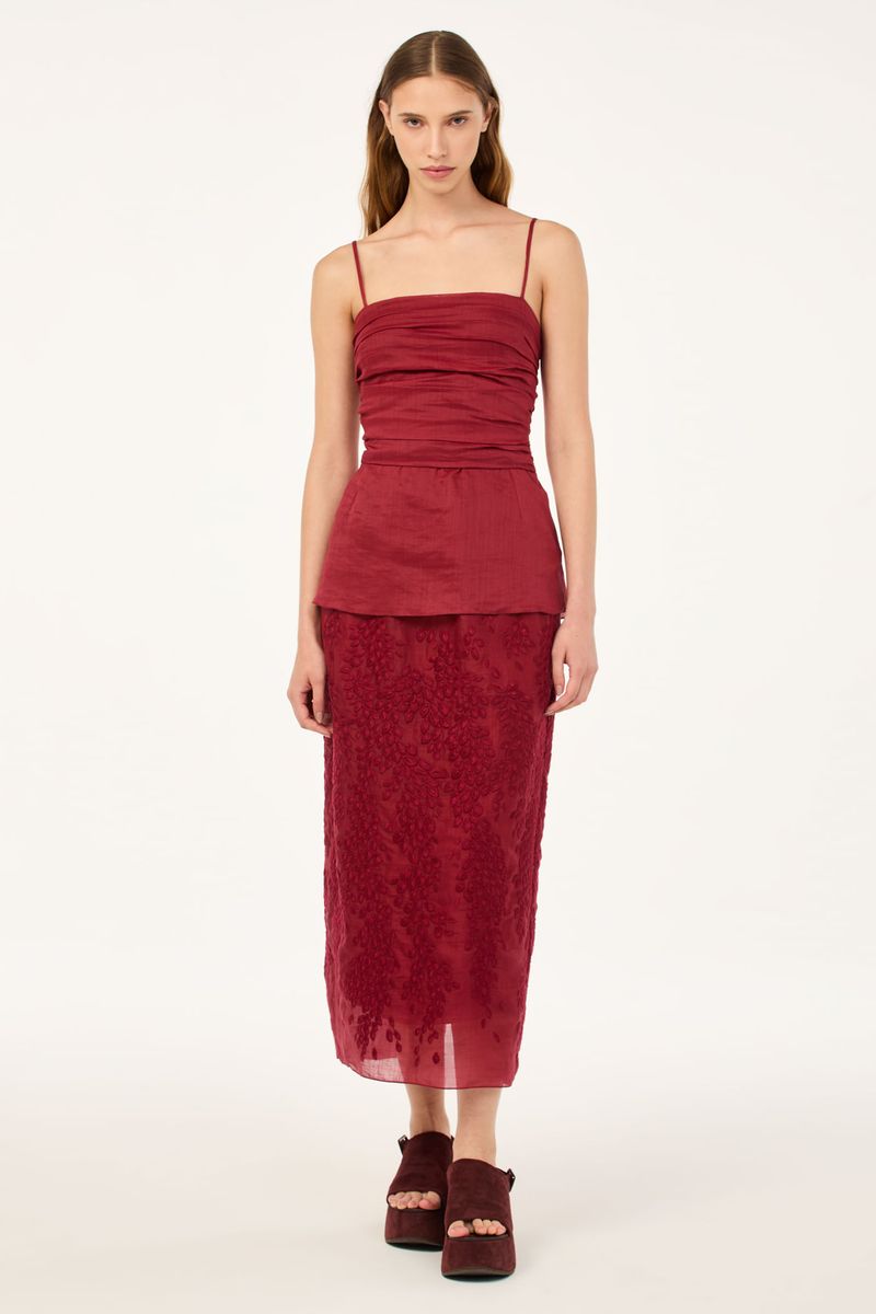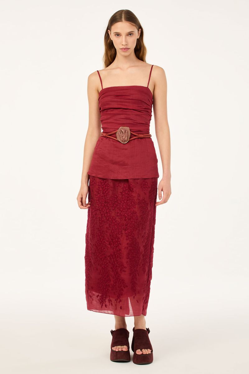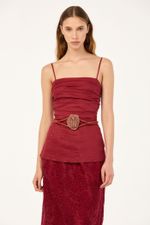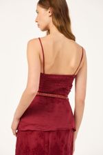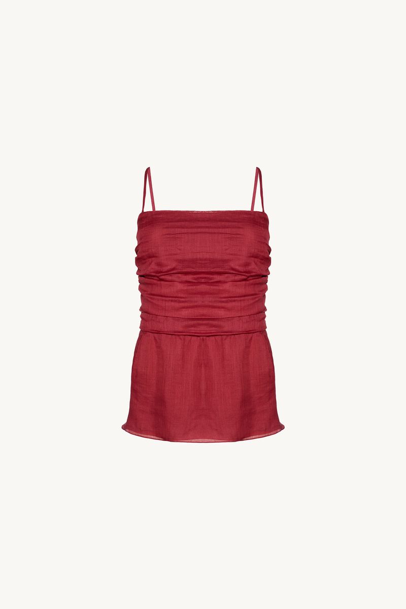O top Alana CRIS BARROS é fresh e elegante. De Ariela, voil de linho puro, leve porém estruturado. Possui shape justo e acinturado, decote reto, alças finas e busto franzido.