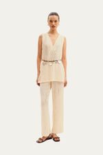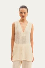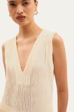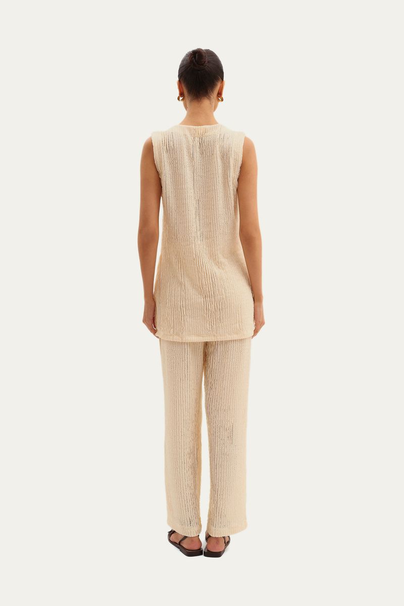 Top em tecido texturizado. Modelagem de caimento reto, decote em V. Lavar à mão. Não pode ser passado. Composição: 95% Poliester 4% Elastano.