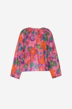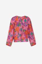 O top Andra mini CRIS BARROS exala frescor e leveza. Com seu mix de cores envolvente e detalhes delicados, esta peça é feita em Lavínia, um tecido 100% algodão de caimento sutilmente encorpado. Possui modelagem reta e ampla, decote arredondado com pregas aparentes, cavas estilo raglan, mangas longas com punhos elásticos, abertura posterior, comprimento regular, estampa floral multicolorida desenvolvida especialmente para a coleção e fechamento traseiro por abotoamento com botões de madrepérola.