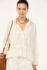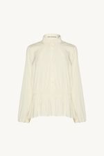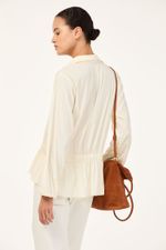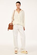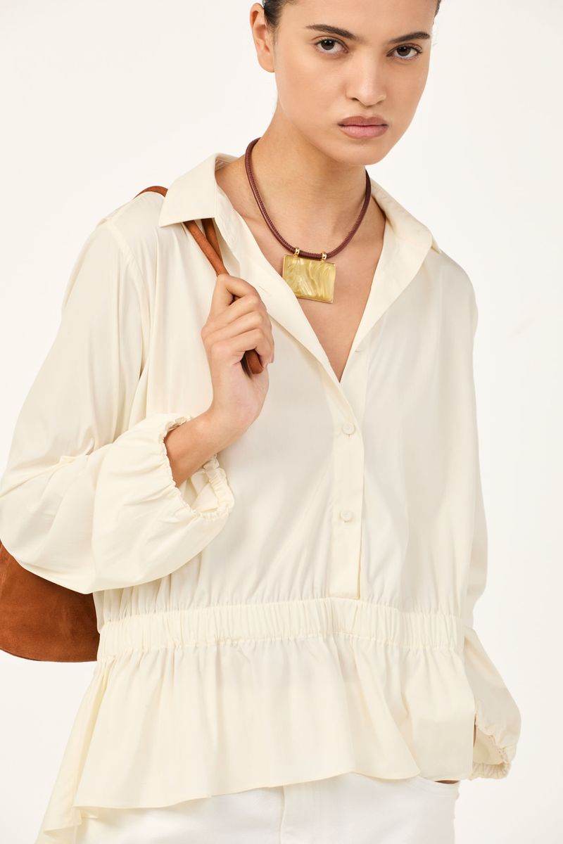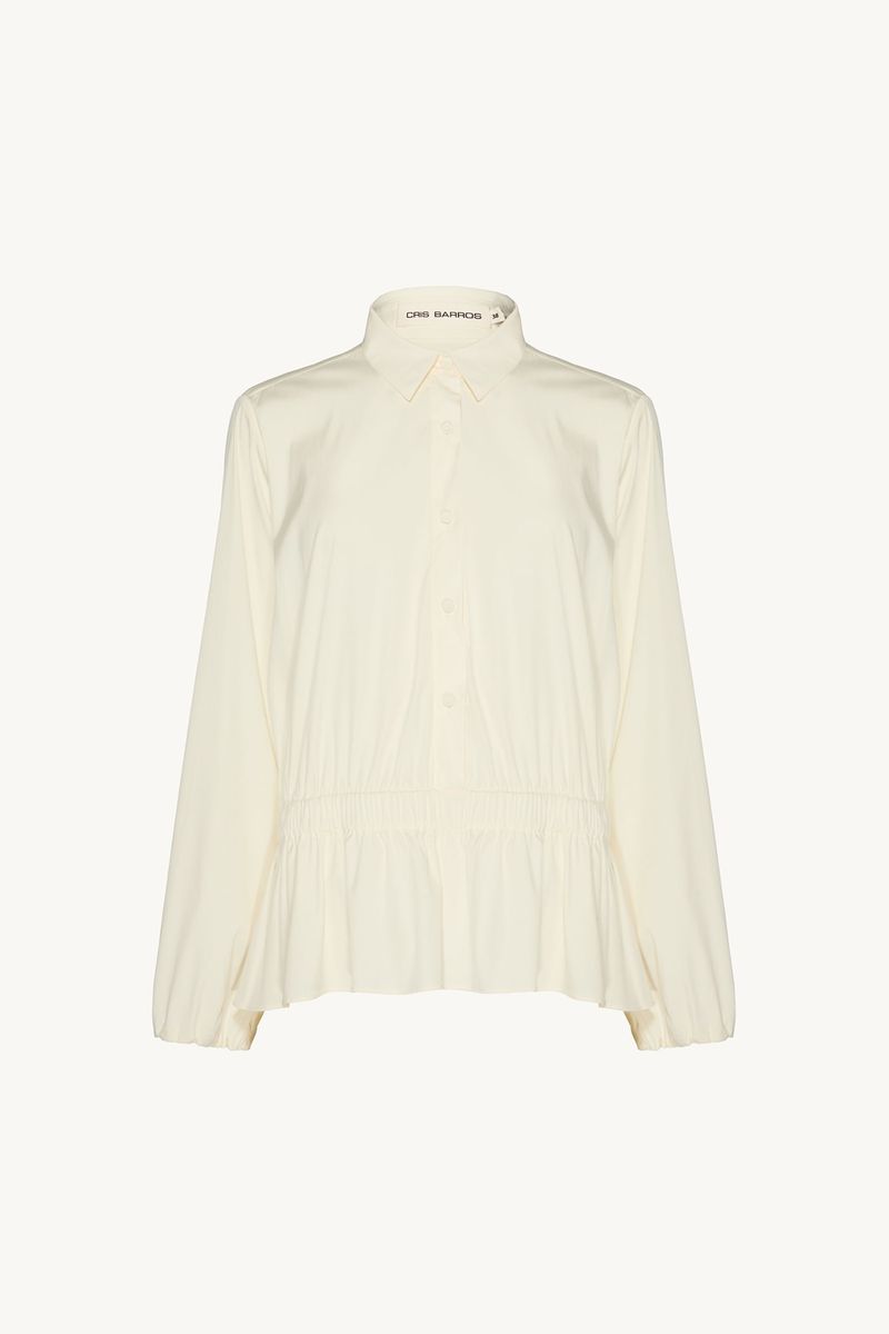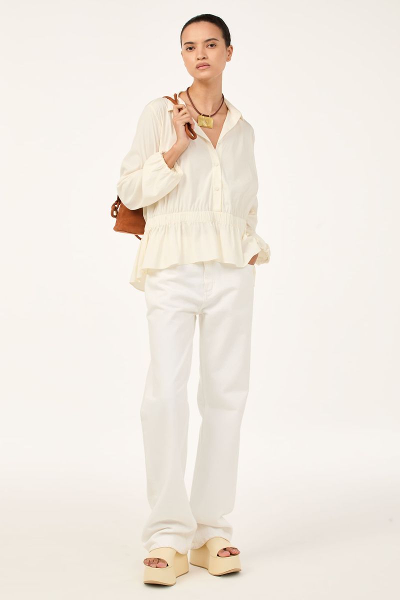 O top Athena CRIS BARROS é clássico e atemporal. De Eugênia, tecido misto, confortável com caimento leve e fluido, feito de fibra de origem renovável que possui a certificação TENCEL MODAL, garantindo manejo florestal sustentável e uma produção ecoeficiente. Possui shape reto, mangas longas, vista com botões forrados, detalhe com elástico marcando a cintura e caimento êvase.