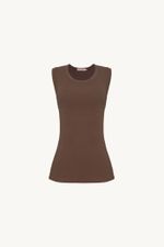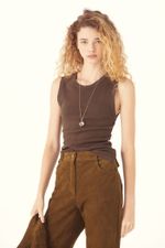 O Top Belluci traduz o básico atemporal em uma leitura precisa, onde conforto e traços modernos se encontram. Confeccionado em Rib, malha canelada de algodão penteado com elastano que proporciona toque macio e conforto, possui fibras com certificação sustentável ABR, que são tecidos produzidos seguindo critérios corretos de sustentabilidade. A modelagem ajustada ao corpo com decote careca e sem mangas desenha uma linha limpa, enquanto a etiqueta bandeira CRIS BARROS, tinturada e aplicada no centro do decote costas, finaliza a peça com assinatura discreta e contemporânea.